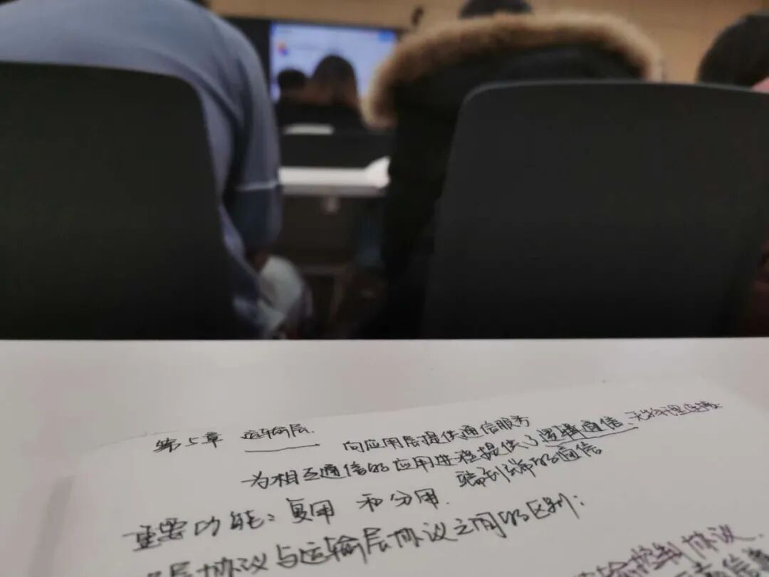网安校区的主要楼栋间都架设了廊桥,网安学子可以走廊桥便捷地通勤。从廊桥可以窥探新校区的建筑构造,从圆环式的宿舍到网格笼式的图书馆及冠式的教学楼食堂,具有很鲜明的现代科技风格。“有一次坐出租回学校,师傅问我这是不是个专科学校,因为太新了。”X学长分享着自己的经历。武大的教学楼叫“新珈楼”,华科的“明德楼”与之对应。新珈楼分为”A””B””C”三区,分别用作行政楼、教室与实验室。教学楼装潢设计色调简约,建筑空间尽显大气。新珈楼每间教室的门口都有一块显示屏,网安学子可以查看当前教室的空闲情况。