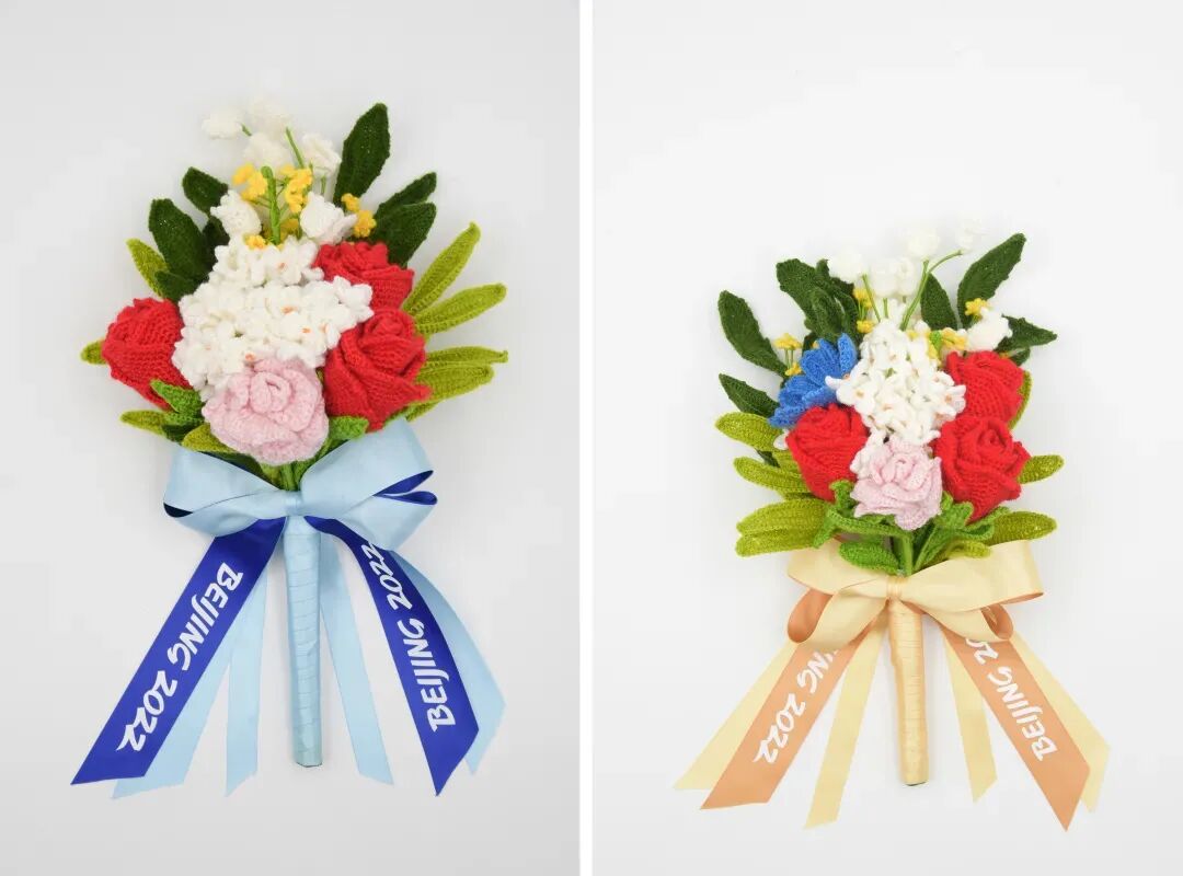 北京冬奥会的颁奖花束和以往传统的鲜花花束不同,这次冬奥会的颁奖花束采用海派绒线编结技艺钩编而成,是永不凋谢的绒线花。