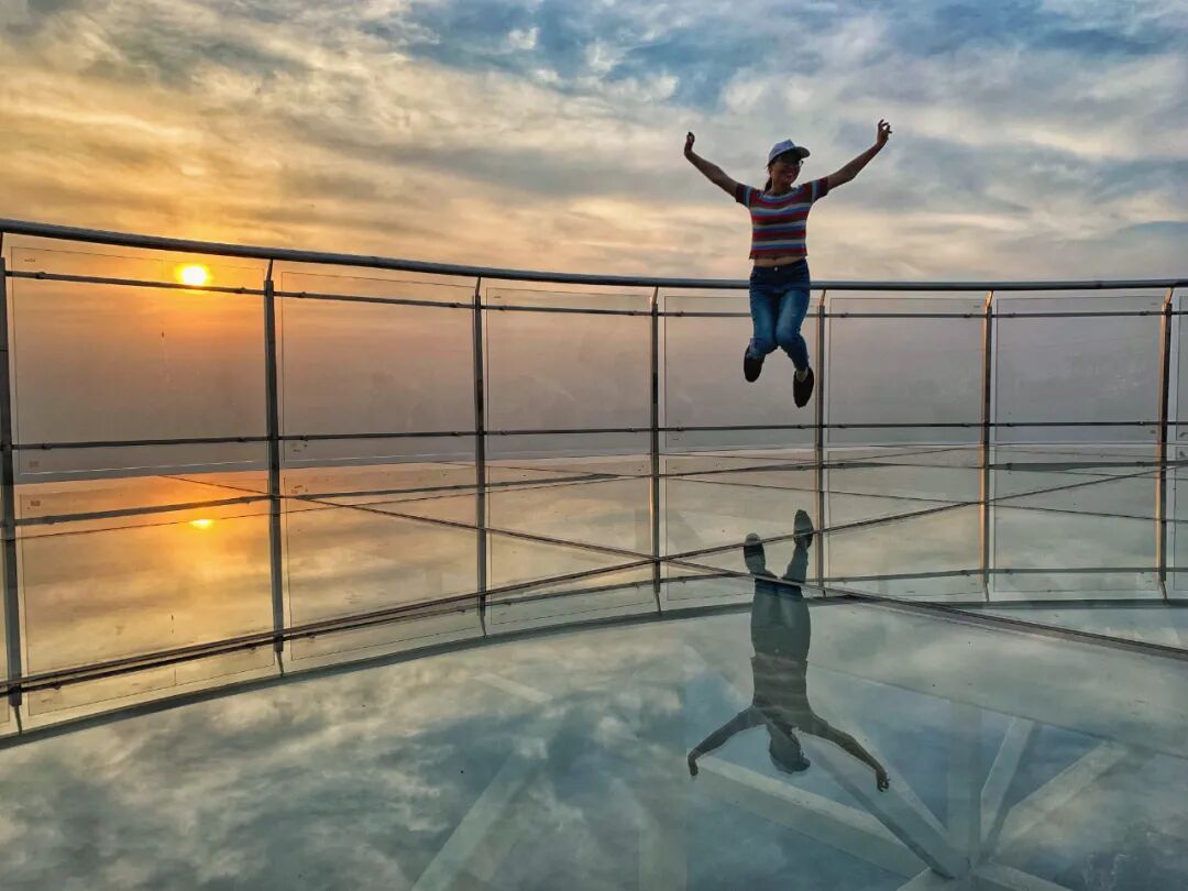 黛眉山的玻璃栈道,全长约480米,宽1.8米,建在海拔1300米的悬崖之上。脚下就是万丈悬崖,站在千米高的玻璃上,整个人如悬空而立,透过玻璃往下看,不仅山间美景一览无余,还有更加强烈刺激的快感。