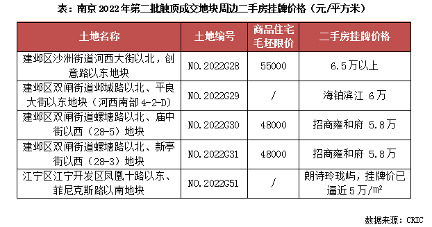 在31幅限价宅地中,也有13宗地块销售限价明显抬升,上涨幅度基本都在1000元/平方米以上。譬如,栖霞区仙林街道G35地块,通过降低容积率的方式来提升住宅销售限价,项目毛坯限价达39000元/㎡,高于今年一批次周边成交宅地5000元/平方米。在13宗地中,雨花人居森林G41地块及浦口桥林G56地块均为流拍或撤牌再挂地块,此次推出新房限价也明显上涨,房地价差空间也有所提升。