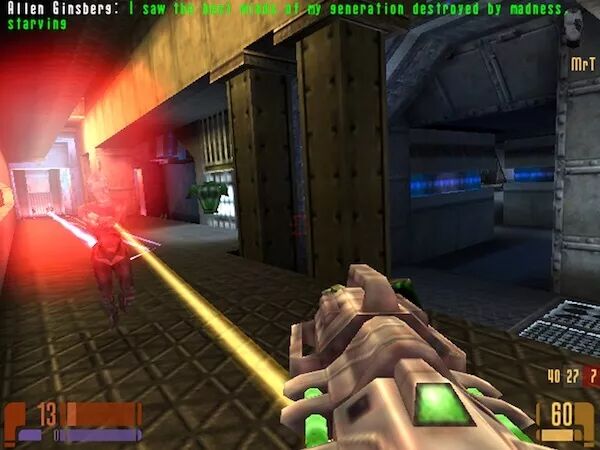 与其他玩家不同,德拉普的游戏过程总是“不走寻常路”,擅长利用射击游戏文本来反思战争。2001年,他在网游《星际迷航:旅行者——精英部队》(Star Trek: Voyager-Elite Force Online)中,将自己的玩家角色命名为“艾伦·金斯堡”(Allen Ginsberg)。后者是20世纪著名美国诗人,反战是其作品中的重要主题之一。当别人拿着武器在枪林弹雨中厮杀时,德拉普却拿出了金斯堡的诗集,在游戏中的即时通讯区逐字敲出了《嚎叫》(Howl)全文,试图解构射击类游戏,并唤起玩家们对战争的批判性反思。在这一过程中,由于德拉普的玩家角色没有开枪,频频被击中身亡,因此他打字的过程总是被打断,总时间超过了六个小时,才完成这款名为《嚎叫:星际迷航旅行网游》的作品。