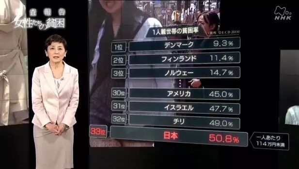 NHK关于贫困女性的报告播出画面