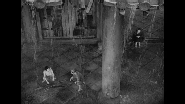 《罗生门》剧照 暴雨冲刷下的罗生门牌匾