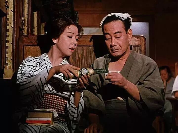 两部《浮草》情节上没有任何变动,台词也基本照旧,彩色版颜色可能是小津电影中最明丽的,但事后回想倒比黑白版更令人伤感些。其中有一幕,戏班情人听说班主原来是搁浅在老情人家,她立马动身前去拿人。雨天,班主正享受难得的父子游戏时刻,老情人来说,下面有人找你。