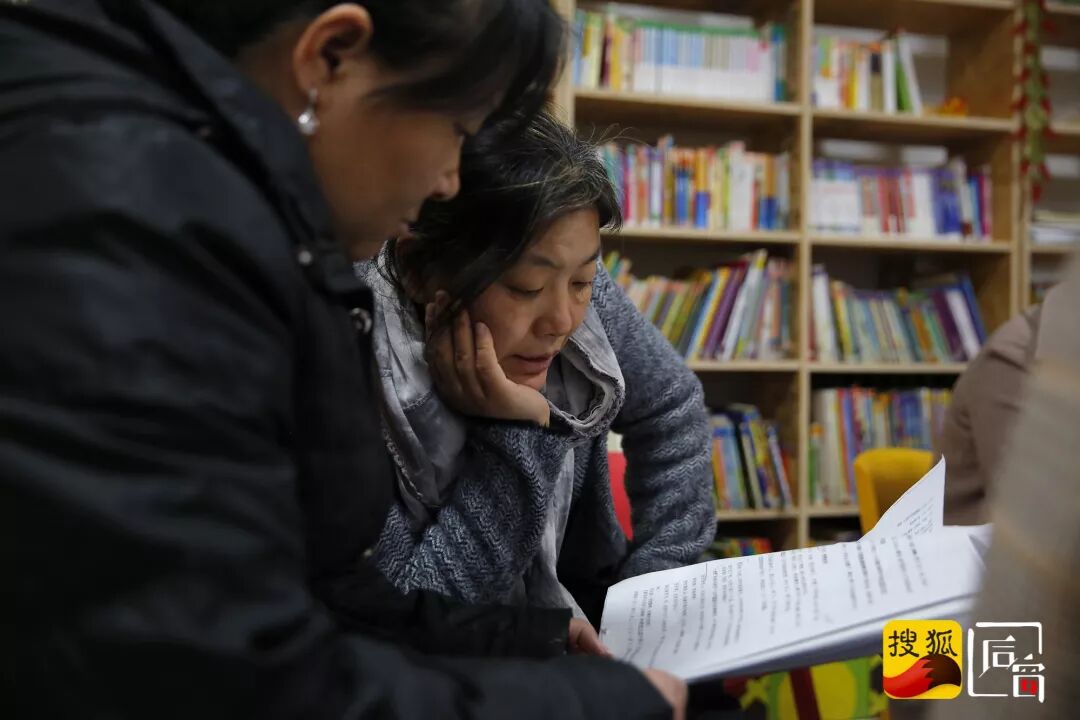 齐丽霞(右)正在看台词(图片来自网络)
