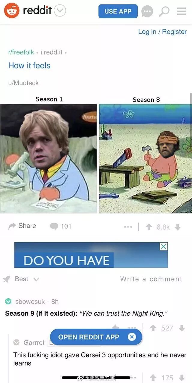 更进一步说,当《权力的游戏》取代了《冰与火之歌》,当铁王座的归属悬念取代了奇幻世界的终极奥秘,当围绕王权的刺杀阴谋取代了生者与死者的伟大对决,而某些权斗参与者所表现出来的智谋,又简直不足以在《甄嬛传》中活过一集,也就无怪乎会有剧迷引用甄嬛的台词,发出这样的扼腕叹息:“这几年的情爱与时光,终究是错付了……”