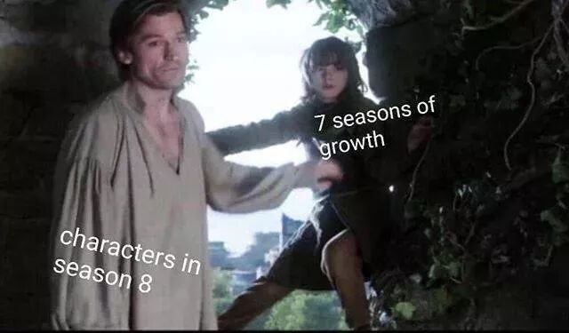 但是,从观众的反馈可以看出,在《权力的游戏》第八季中,这样的反转显然是太过刻意,也太过突兀了。诚然,马丁的每一卷小说都包含着令人意外的情节反转,但那些反转却往往有着草蛇灰线的情节铺垫,能让读者在回味中感到入情入理。相比之下,两位编剧在剧集中所做的,就只能说是东施效颦一般的“为反转而反转”,它们不但缺乏足够的铺垫与合理的逻辑,甚至还严重破坏了很多观众对于人物弧光甚至剧作主旨的既有认知。