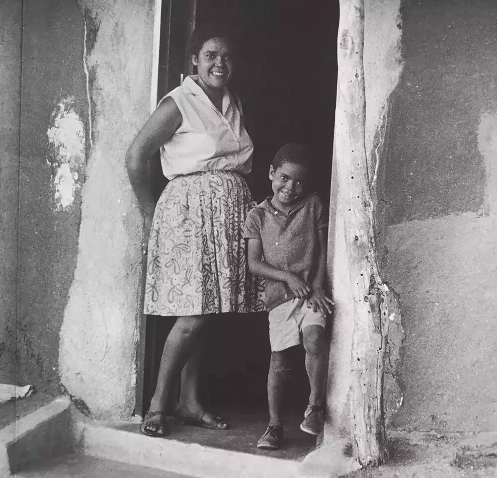 南非女作家贝茜·黑德和儿子在寓所门口。逃离种族隔离制度后,她定居在博茨瓦纳的索络维村,在这里从事农村合作社实验,并写下了自己大部分传世之作