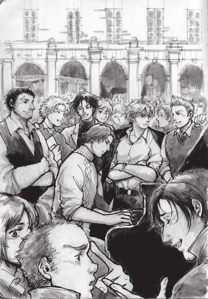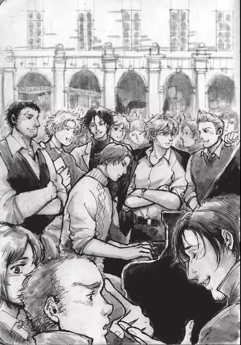 同人画手 dome 创作的《悲惨世界》1968 AU同人画,学生占领索邦大学后在广场上弹钢琴