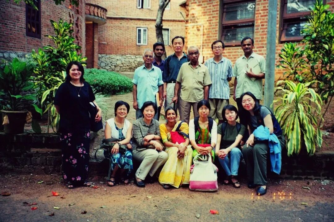 2001年,印度喀拉拉邦农村调研。温铁军(后排左三),黄平(后排右二),刘健芝(前排左二),戴锦华(前排右一),薛翠(前排右三)。