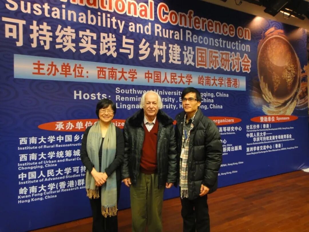 2012年12月8-10日,可持续实践与乡村建设国际研讨会。左起:刘健芝,萨米尔.阿明, 黄钰书。