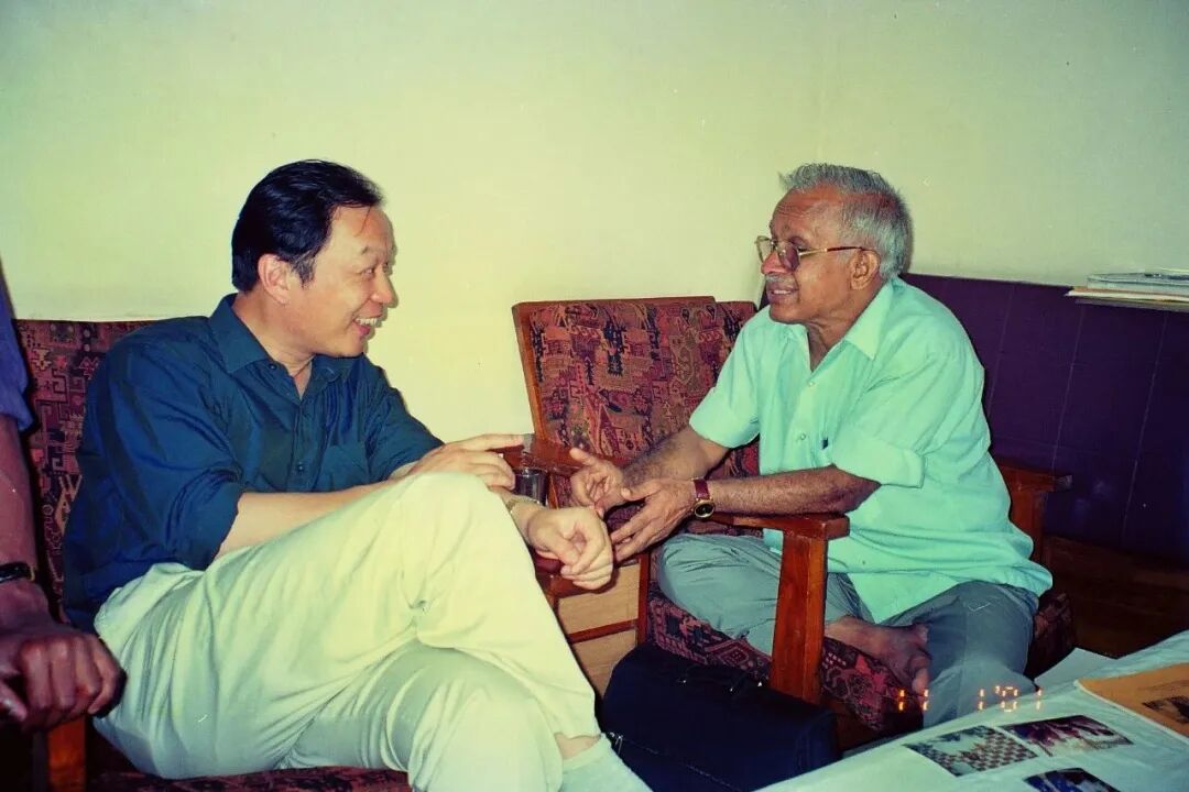 2001年,印度喀拉拉邦,温铁军与MP 帕拉梅斯瓦兰(MP Parameswaran)交流。