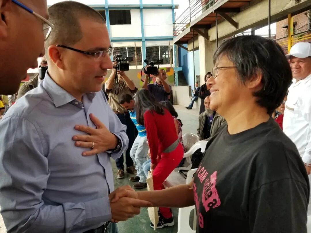 2020年1月8日, 委內瑞拉加拉加斯蜂巢公社2021,委內瑞拉人民政权外交部长豪尔赫·阿雷亚萨(Jorge Arreaza )与刘健芝交谈。