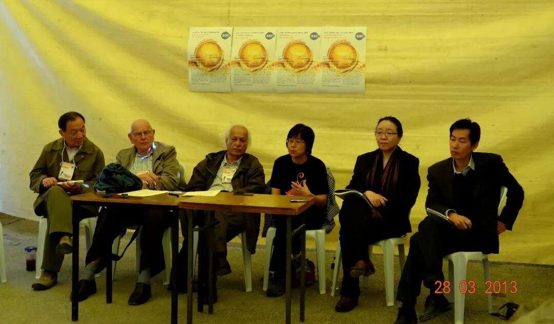 2013年,在突尼斯世界社会论坛,举办中国专题论坛。左起:温铁军、Francois Houtart、Samir Amin、刘健芝、戴锦华、陈昕。
