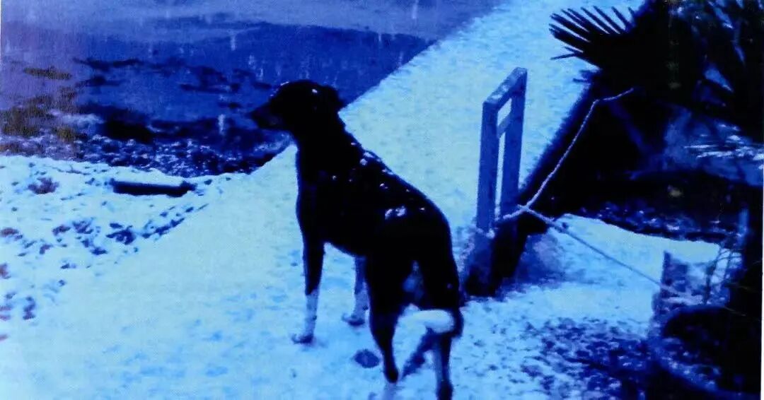 另一方面,人们需转向更为原初的状态来抵抗语言的贫乏与压抑。我们在 前文已多次提到《再见语言》指涉排泄物与性爱的场景,这些都是以语言为代 表的社会秩序所暧昧处理的部分—或者用拉康的话来说,是无法用理性同化 的人类原初“事实”部分。戈达尔通过此类场景,还通过一系列狗和大自然的场 景,构成了其“图像句子”,传达了从语言中逃脱,复归原始自然状态的意念。狗 和大自然是影片另一组重要的意象(几乎与排泄物与性爱构成语义矩阵的复杂聚合关系)。影片中的狗游走在城市与丛林之间,如同一位使者,引领观众从社会生活中脱身,复归一种关于“自然”的想象。电影于是花了不少篇幅拍摄这条狗,提请观众去注视它—试着与狗四目相接,看着它在河边湿地驻足、觅食、 离去,在雪地里打着滚清理皮毛……如果被语言统御的社会生活是一座牢笼, 电影则提醒我们追随狗的踪迹,向前人文世界亦即前语言世界的想象逃逸,只有婴儿的啼哭才带来得救的希望。⑨