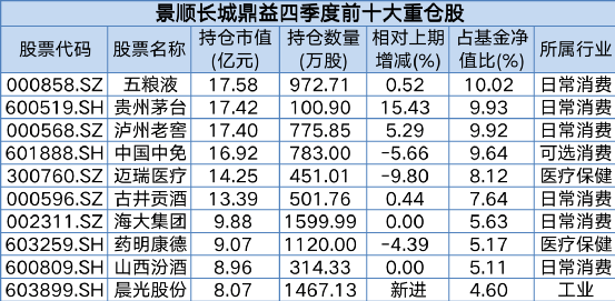 最新披露的四季报显示,刘彦春在四季度果断加仓白酒板块,贵州茅台取代中国中免,重回他管理的景顺长城鼎益基金前三大重仓股,该基金四季度末前三大重仓股也“清一色”全部变成白酒龙头,除了贵州茅台之外,五粮液、泸州老窖也在其前三大重仓股之列。古井贡酒、山西汾酒也继续在其前十大重仓股之中。