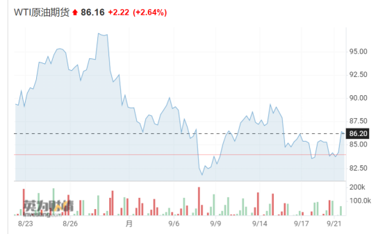 截至北京时间9月21日凌晨收盘,WTI原油期货跌1.49%,报84.45美元/桶;布伦特原油期货跌1.5%,报90.62美元/桶。