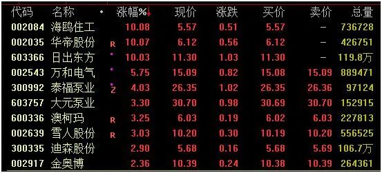 热泵概念亦走强,截至收盘,海鸥住工、华帝股份、日出东方涨停,万和电气涨近6%。值得注意的是,海鸥住工、日出东方均斩获三连板。
