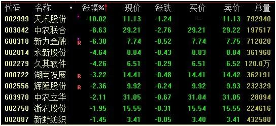 近日活跃的供销社概念盘中大幅下挫,截至收盘,天禾股份跌停,中农联合跌8.6%,新力金融跌超6%;ST大集仍逆势涨停,收盘报1.44元,涨停板上封单约66万手。值得注意的是,此前10连板的天鹅股份仍在停牌核查中。