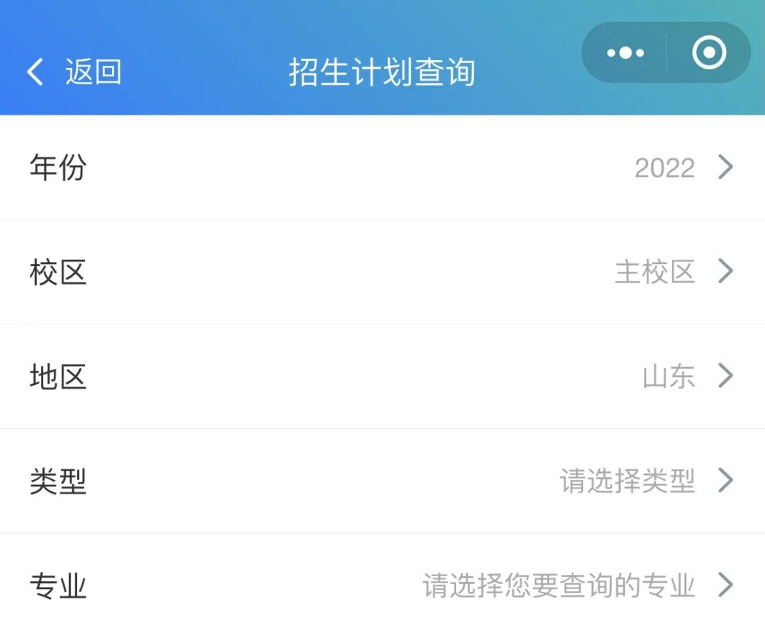 第二步:根据年份、地区、校区、类型、专业筛选后即可查询相应招生计划。