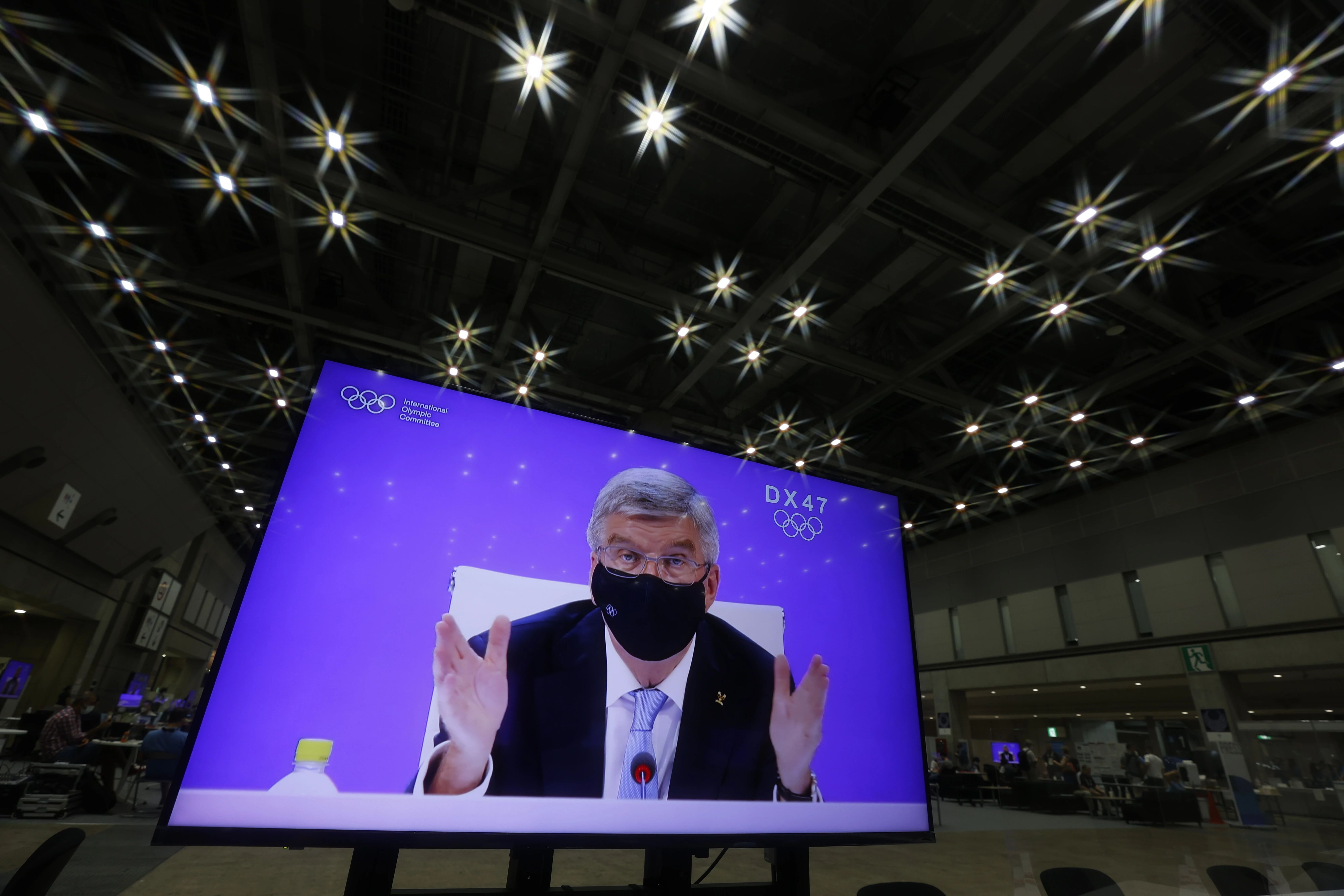 2021年7月20日,国际奥委会第138次全会在东京举行,经投票表决后,同意在“更快、更高、更强”的奥林匹克格言后加入“更团结”,以更好应对后疫情时代。这是奥林匹克格言100多年来首次修改。 中新社记者 韩海丹 摄