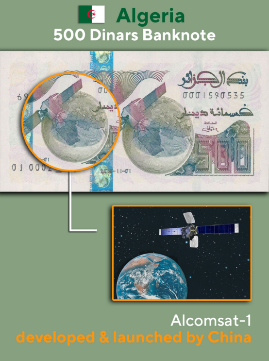 6.阿尔及利亚 500第纳尔纸币 阿尔及利亚通信卫星一号 由中国研制并成功发射