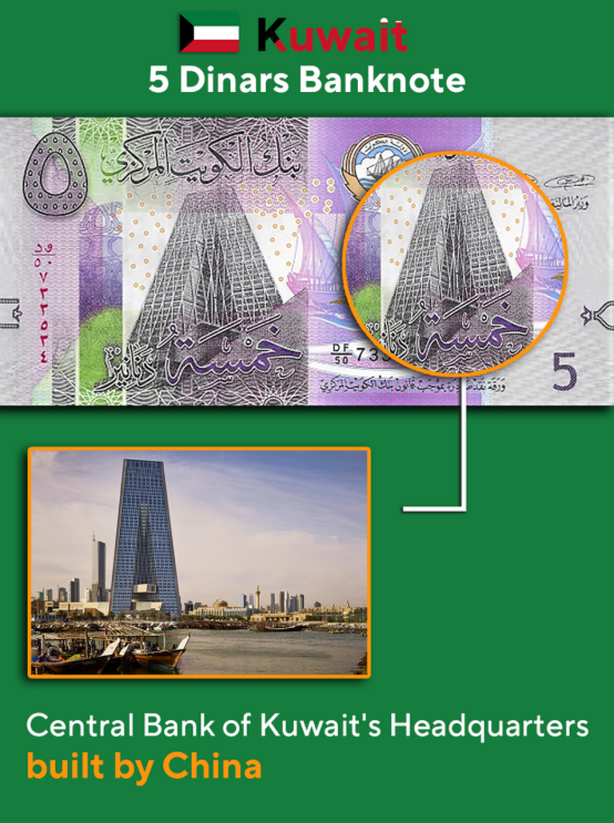12.科威特 5第纳尔纸币 科威特中央银行总部大楼 由中国承建