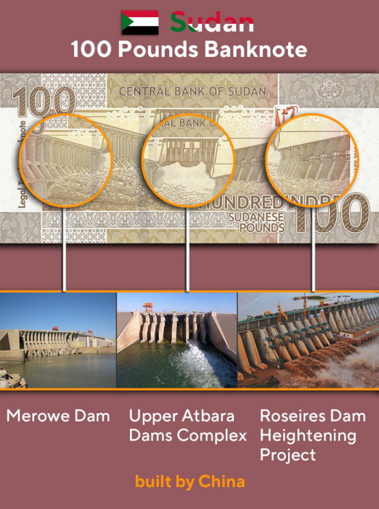 9.苏丹 100磅纸币 麦洛维大坝、上阿特巴拉水利枢纽、罗塞雷斯大坝加高工程 由中国承建