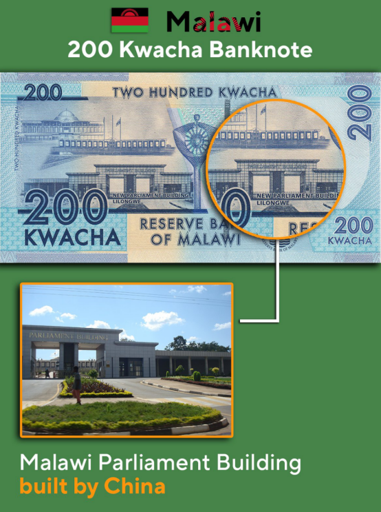7.马拉维 200克瓦查纸币 马拉维议会大厦 由中国承建
