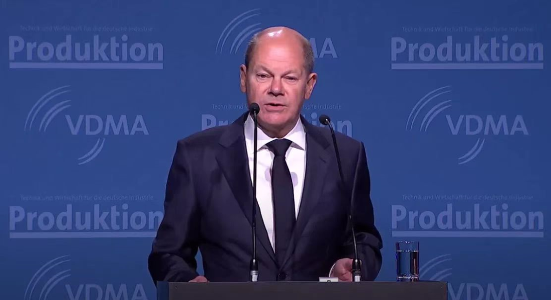 德国总理朔尔茨当地时间10月11日在出席柏林机械工程峰会时发表讲话(图自德媒)