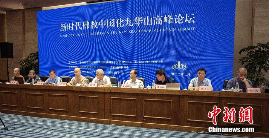 2022年7月31日,新时代佛教中国化九华山高峰论坛在安徽省池州九华山举行,40多位中国宗教研究学者与佛教界代表人士出席。中新社发 邓千军 摄