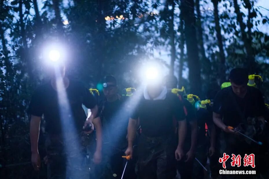8月21日22时30分许,重庆市北碚区歇马街道虎头村突发山火,来自四面八方的救援力量以及志愿者们顶着高温,不分昼夜、向火而行,用自己的方式守护着这座城市。何蓬磊 摄