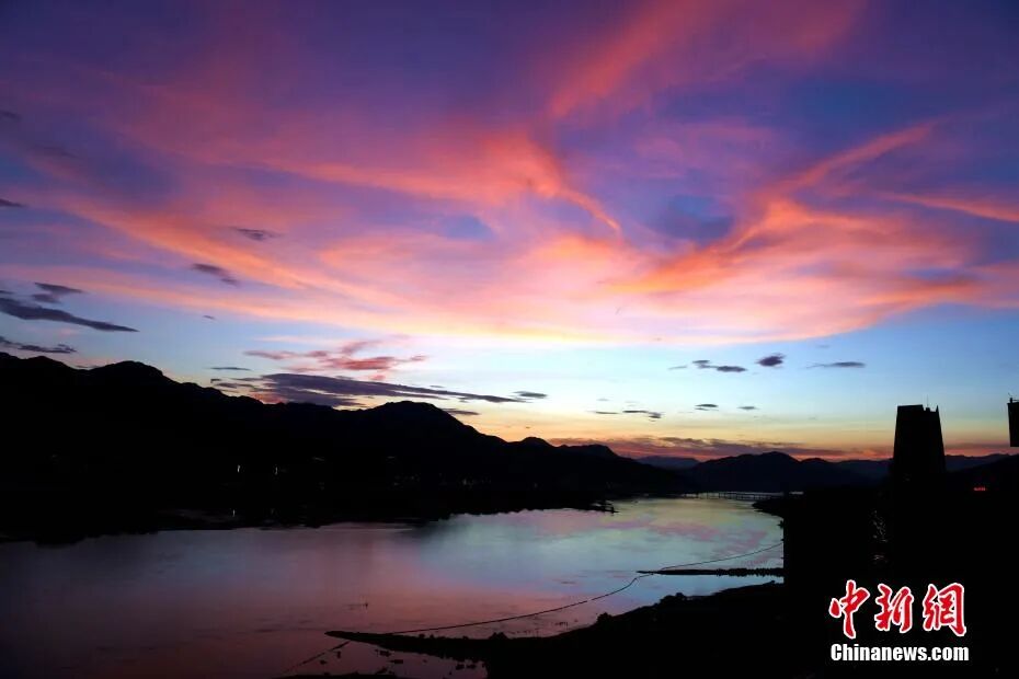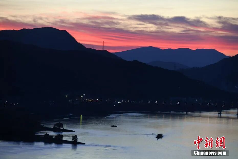 8月26日,福州继续发布高温红色预警信号,落日后,天空晚霞迷人。王东明 摄