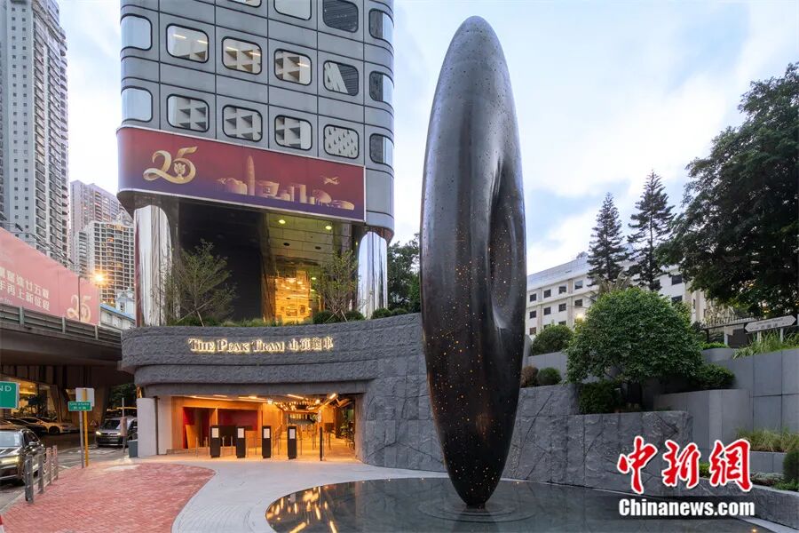 山顶缆车中环总站门口的雕塑《无限之眼》。山顶缆车有限公司供图