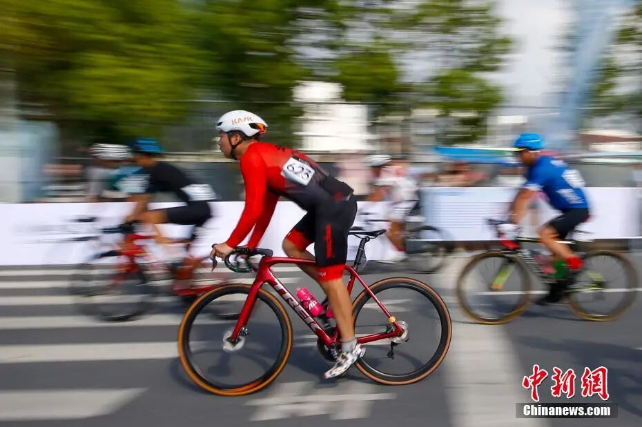 8月27日,第17届中国黄山(黟县)山地车公开赛在安徽省黄山市黟县鸣枪开赛。赛事以“骑行画里乡村·感受创意黄山”为主题,设公路挑战赛、山地越野赛两项,共有1439余名选手报名参赛。图为参赛选手在安徽省黄山市黟县山地车公开赛中激烈追逐。施亚磊 摄