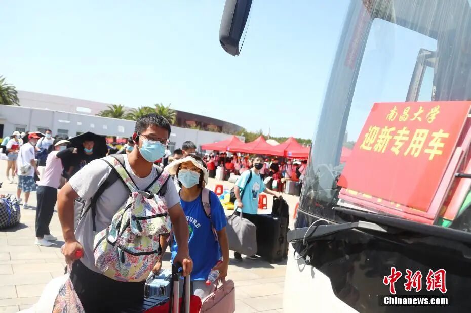 8月27日,南昌大学2022级新生在南昌大学正门依次排队入校。当日,南昌大学迎来2022级新生报到,预计将有一万余名新生陆续抵达学校。刘占昆 摄