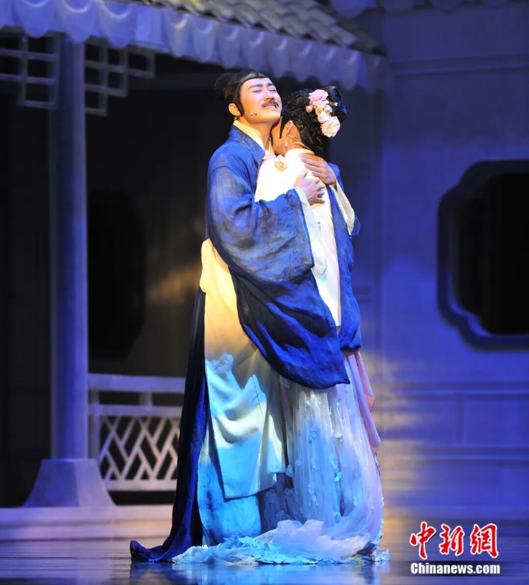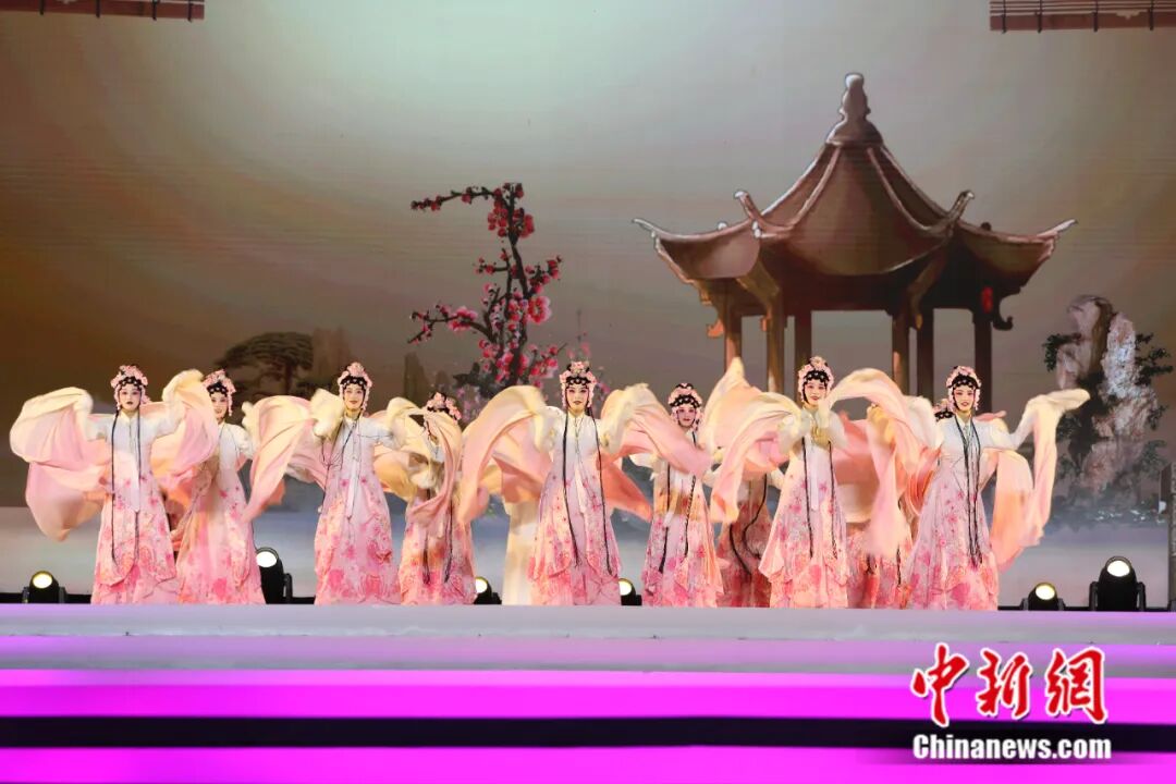 2022抚州汤显祖戏剧节开幕式晚会上,旴河高腔·乡音版《牡丹亭》演出。陈强 摄