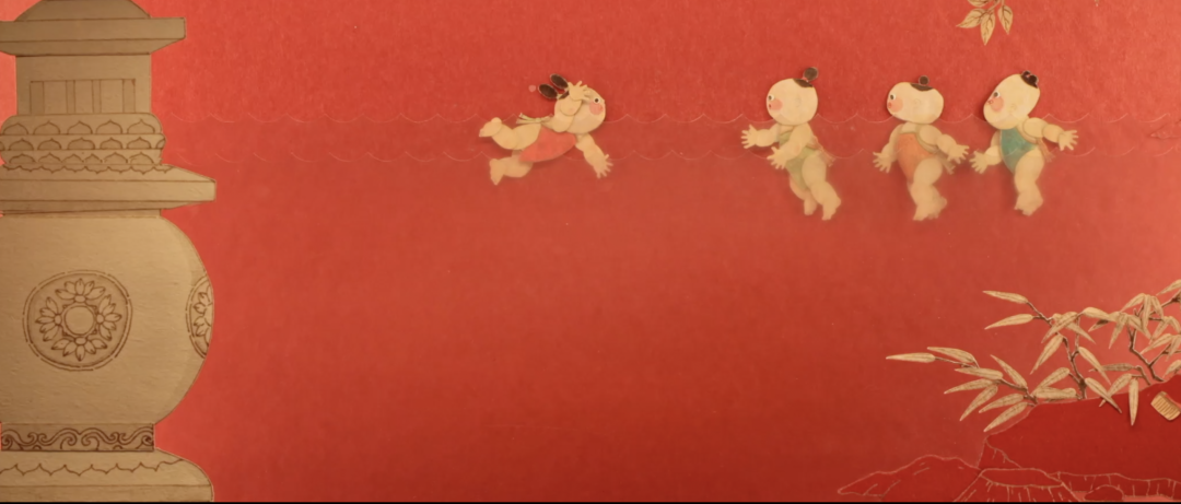 《玉兔》海报。上美影供图这才有了二维平涂风的《小妖怪的夏天》、素描写实的《鹅鹅鹅》、剪纸定格的《小满》、偶片定格的《玉兔》……浓厚中国特色的绘画风格、中国传统工艺剪纸等传统手法完美融入动画的视听表达中,淋漓尽致地展现出国产动画镜头技术的传承与创新。对于分集导演们来说,如何利用技术讲好中国故事,做出新的突破,也是重中之重。《林林》导演杨木表示,虽然大家主题、表现形式各不相同,但每隔一段时间就会聚在一起,聊聊进度,相互提提意见。“当时总导演找到我,说我们现在缺一个纯三维的片子。我一听,压力还挺大的,因为三维动画要想做出突破,其实比二维更难。”杨木回忆。三维动画相信大家知道,《功夫熊猫》的阿宝、《疯狂动物城》的尼克和朱迪……如何用观众心中已经根深蒂固的三维动画做出中国韵味,杨木思忖良久。“我们能不能只提取古人看待事物的方式以及他们的审美核心,运用到三维动画中去,我认为这是一个比较重要的尝试。”基于此,《林林》在制作中很多的处理方式和以往完全不同,低饱和度、低反差的画面、弱化明暗交接线……“在背景的处理上,我们用了一些借鉴了一些中国画的这种散点透视的方式,而且在很多场景上加了一点点笔触的效果,它就会让整个画面呈现出来,跟我们常见的三维感觉很不一样,它有一点水墨的感觉,但它又不是一个纯的那种水墨动画。”杨木还故意抽帧,在某些段落,把普通三维的每秒24帧调整成了12帧,去营造留白的氛围和手工的拙感。“这个就很像我们古人的一些处理方式,他不会去考虑这种我的动感,它反而是一种更安静、更有韵味的状态。所以我们这次也是进行了一个尝试。”《小满》作为使用传统剪纸动画技法制作而成的影片,导演陈莲华表示,“为了增加影片的生动气息和真实感,制作团队反复沟通,琢磨与尝试。为了更好地呈现出水的质感,一分半的镜头足足拍摄了一个月。”拍摄影片的摄影台更是陈莲华、周小琳两位导演根据赛璐璐时代的动画摄影机原理,用有限的材料复刻而成。《中国奇潭》之所以能火出圈,更为重要的一点是,它能够引起新时代年轻人的共鸣。