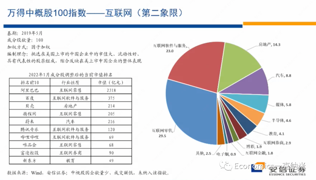 那么另外一个的话我们进入第二象限,第二象限我们想了一段时间的话,我们觉得这个非常典型的话,我们找的一个指数的话是万德中概股100指数的中概股,100指数里边的大头的话是互联网。当然除了互联网还有很多别的企业,但是大头是互联网。