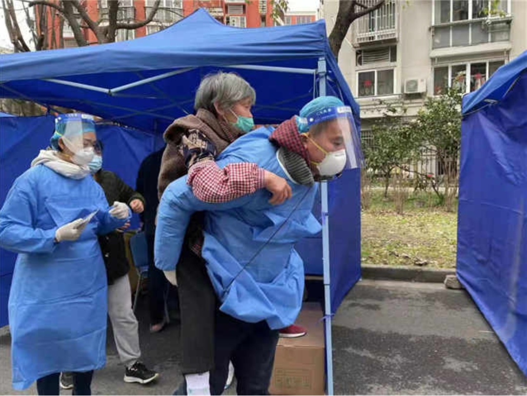 “2个100米,还是可以有的!”志愿者背起老人去测核酸