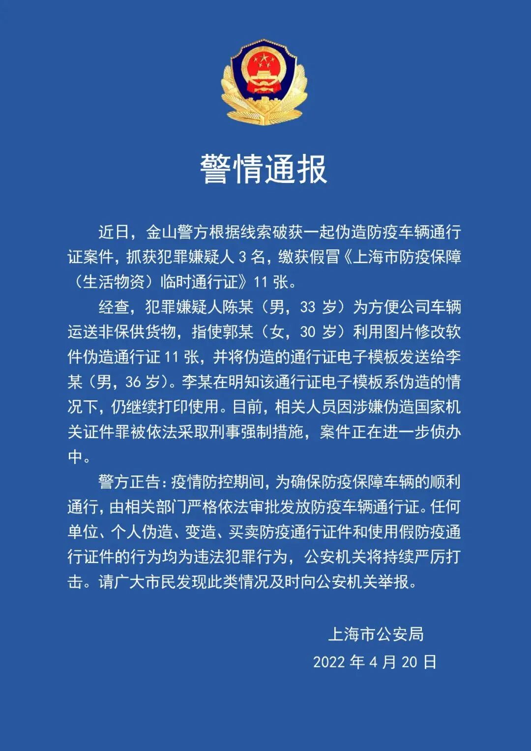 伪造防疫车辆通行证!3人被抓