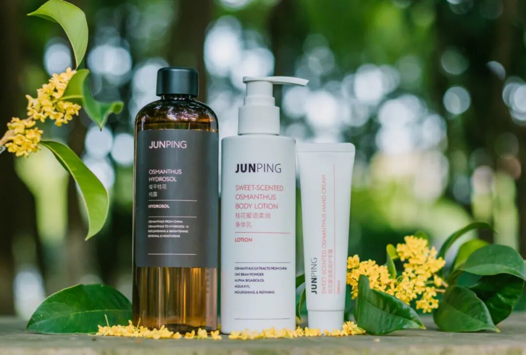以2020年JUNPING推出的桂花纯露为例,为了最浓郁的香味,JUNPING不惜耗费更多的人力物力财力,选择了一年只开一次、花期只有十天的桂林金桂。因为原料珍贵,必须当天采摘、当天收购、当天低温运输、当天蒸馏,才能保障桂花产品的品质。
