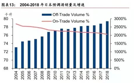 伴随着消费者预算意识增强、生活节奏加快、人口老龄化加剧和年轻一代“宅”文化趋势,越来越多的日本消费者倾向于在家中饮酒。预调酒在日本的消费场景定位非常明确,2018 年有 97%的预调酒都是消费在非即饮渠道,