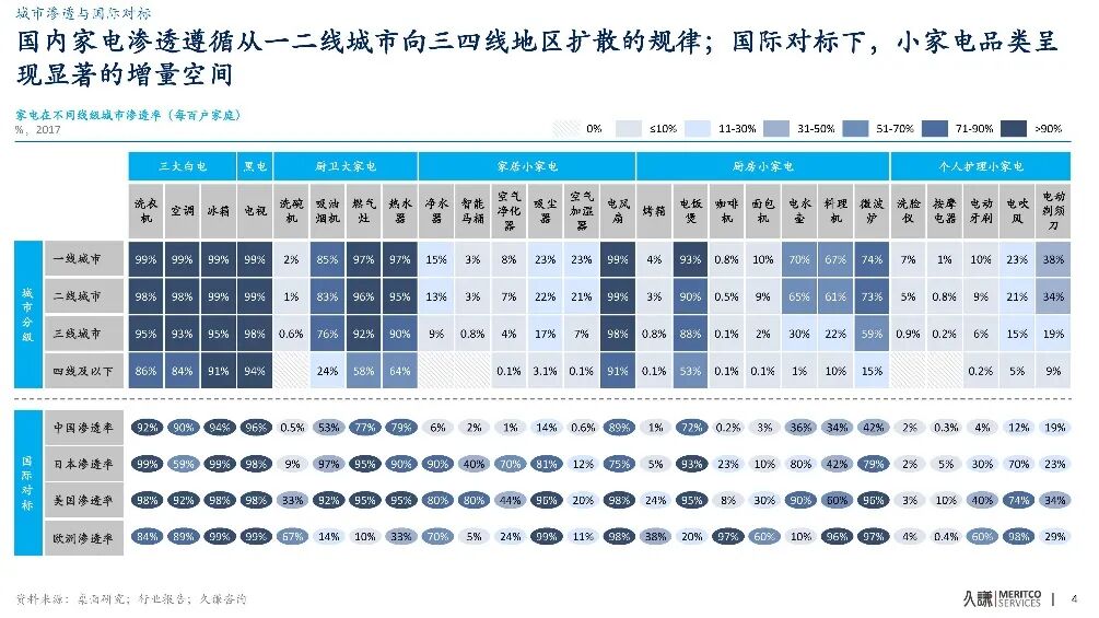 3.长尾品类小家电,渗透率多集中在20%以下,出现了和常规品类之间明显的断层。
