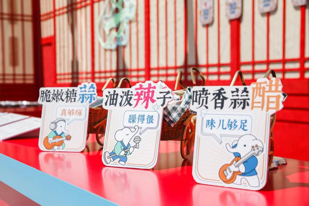在音乐节现场,食品展位能像理象国这么大,是一件很“奢侈”的事。在这个红色中国风的展位现场,有些江湖客栈味儿,来来往往的“蹦迪男女”们,在这汇聚一堂,好好补充一顿能量,然后继续“赶路”。颇有新中式设计感的灯笼和随处可见的戴着耳机、拿着吉他的品牌大象logo,制造出了新旧的碰撞感。
