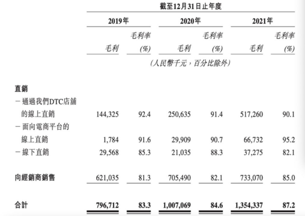 根据巨子生物招股书所显示的数据,2019~2021年,巨子生物营收分别为9.57亿、11.90亿、15.52亿,净利润分别为5.75亿、8.26亿、8.28亿。
