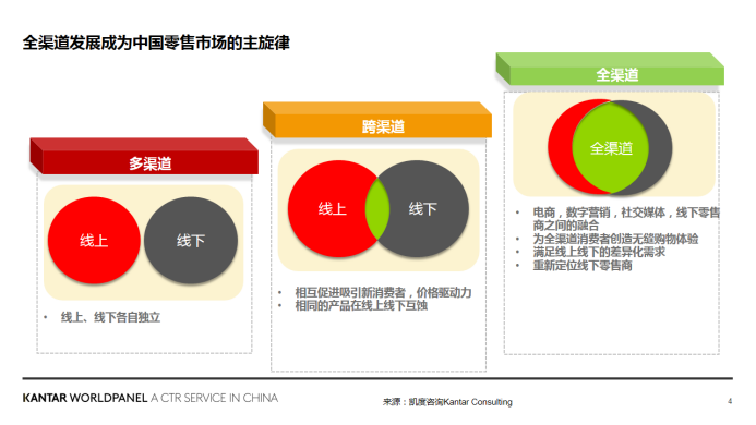 持续接近两个多月的疫情,让中国国民经济的方方面面。特别是零售行业受到了巨大的冲击。凯度消费者指数作为全球领先的咨询公司,对这场疫情的影响和发展做出了深刻洞察。3月6日,新消费内主办线上公益直播课,邀请凯度消费者指数大中华区总经理、快速消费品研究专家虞坚,就中国零售全渠道发展的七大趋势和后疫情时代品牌如何致胜,进行深入探讨。在长达一个小时的分享中,虞总积极为零售行业发声,主要探讨了以下几个问题:非常感谢新消费内参的邀请,今天面向消费品行业的朋友做这样的直播,分享凯度消费者指数对于中国零售市场的观察,以及这次疫情过后,我们对于中国零售市场全渠道发展的判断。随着电商过去十年在中国的发展,特别是近两三年线上线下融合的趋势越来越明显,全渠道是中国零售发展的大势。我们今天讲全渠道这个话题,就是希望能够暂时跳出这一次的黑天鹅事件,帮助大家梳理过去这五年中国零售市场发展的趋势和脉络。同时,也帮助大家看清这次疫情之后,对于现在零售渠道趋势会产生怎样的影响,帮助大家对于未来做出更长期性的判断。首先,我想来介绍一下凯度消费者指数。凯度消费者指数是一个比较独特的市场研究机构,我们每天都在观察中国消费者的购买行为,从中国消费者真实的购买行为出发,去了解中国零售市场和消费者行为的变化。我们直接从消费者端,通过条码扫描的方式去采集数据,了解消费者每天在买什么、怎么买,在哪里买以及他们在看什么、想什么,让品牌可以更清晰全面动态地洞悉他们的消费者。我们的调查在1996年从中国的一些大城市开始,目前覆盖中国一到五线的城市消费者在快速消费品方面的购买。我们每年观察600多万个购物篮,分析买买买后面的规律。在中国,很多大型快速消费品品牌主和零售商都和我们有长期的合作。![]()