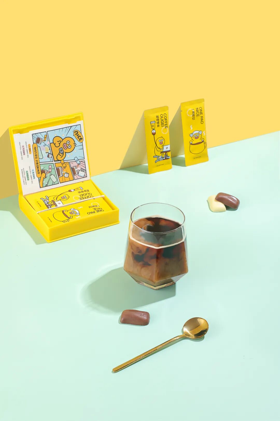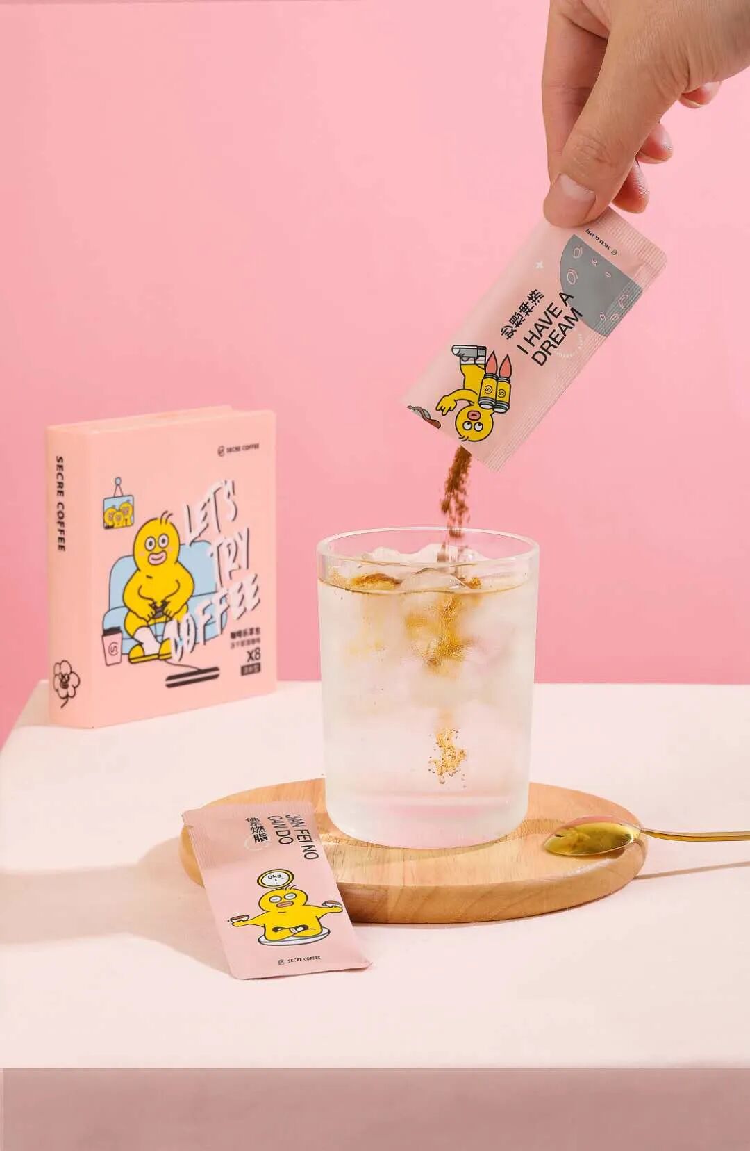为此,在品牌形象的设计方面,我们花了很多心思。所有传统品牌咖啡的包装,都有点商务范儿太重了,过分地强调黑白色调,呈现美式的风格。这样的设计显得它做咖啡足够专业,但不够亲切和有趣。时萃希望传递的是有趣、自由、有个性、有脑洞的调性,所以我们在产品包装和视觉设计的过程中,采用的主色调往往是多彩的,黄色、粉色是最主要的主题色。生活可能有时候就很忙碌很苦了,我们希望让大家觉得咖啡能带来一点甜。