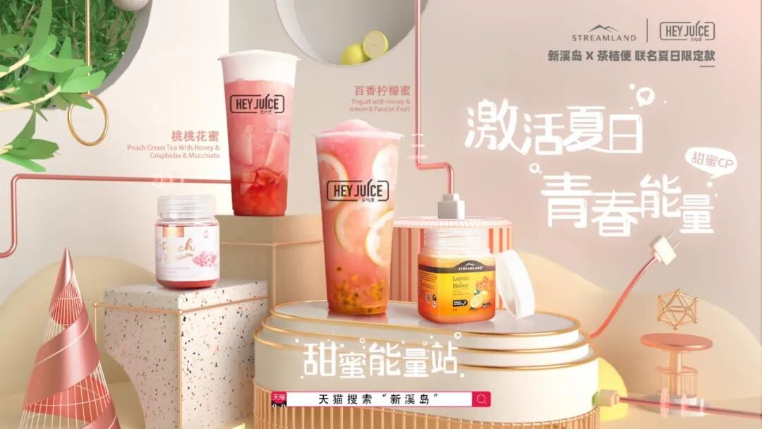 而最近,新西兰蜂蜜品牌Streamland新溪岛联合茶饮品牌HEY JUICE茶桔便,打造了“甜蜜能量站”——治愈你的生活小确丧活动,推出了充满甜蜜能量的夏日限定款蜂蜜花果饮品:我有我花young-桃桃花蜜和青春有me-百香果柠檬蜜。这一次,蜂蜜与新茶饮进行了甜蜜的“牵手”,蜂蜜为茶饮的健康加分,年轻人也通过喜爱的茶饮品尝到了甜甜的蜂蜜,拓宽了蜂蜜的饮用场景。