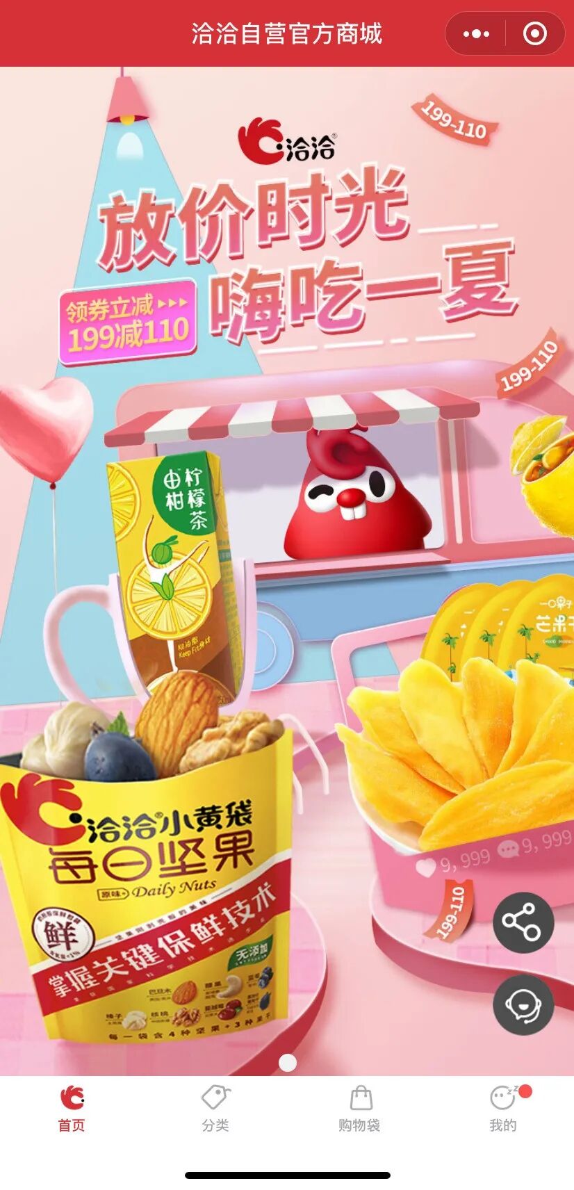 洽洽食品在2019年4月与微信支付合作建设微信商城,以品牌在小程序生态搭建为重点,围绕前端推广、消费者触达、销售转换等方面进行优化,推进品牌增长。洽洽食品微信商城已累计成交2600万销售额,曝光量接近3亿次,商城累计访客1100万,小程序收藏用户数达12万,月均支付用户增长率30%。